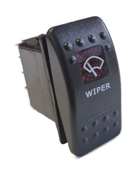 Клавишный фиксируемый переключатель на восемь контактов. С индикацией работы и ночной подсветкой. Предназначен для работы с двухскоростными стеклоочистителями с режимом "парковки". Для удобства монтажа на приборной панели используйте фиксирующие рамки.