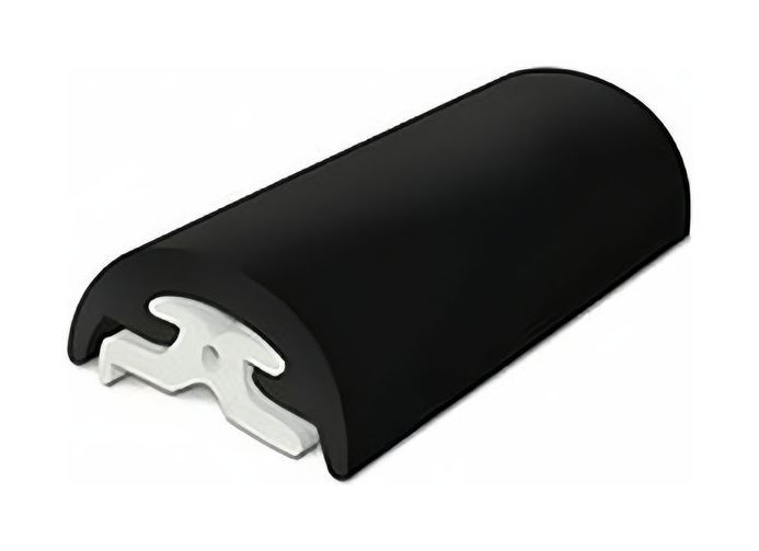 Наружный профиль привального брус. Жесткое невидимое основание, закрепляемое на борту судна шурупами или заклепками, поставляется в отрезках по 2 м. Полужесткий наружный профиль, монтируемый простым надавливанием (без нагрева), в бухтах по 24 м. Обратите внимание, что основание и профиль заказываются отдельно.Характеристики модели «Наружный профиль привального бруса ПВХ, 65 мм, бухта 24 м.»