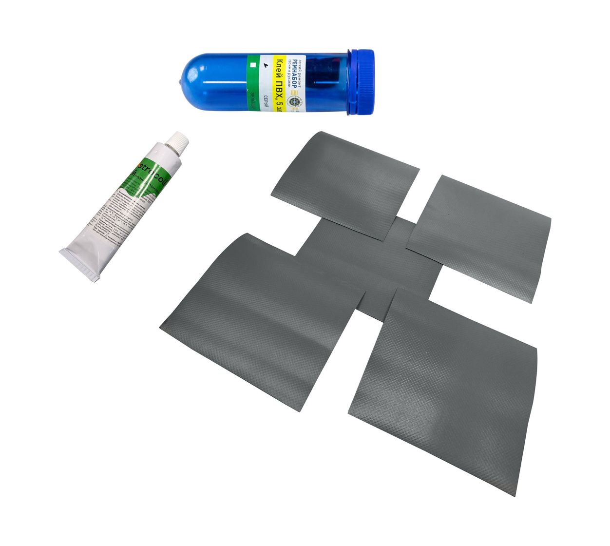 Описание модели «Ремкомплект лодки ПВХ (клей «KLEYBERG» 30мл,5 латок, серый)»