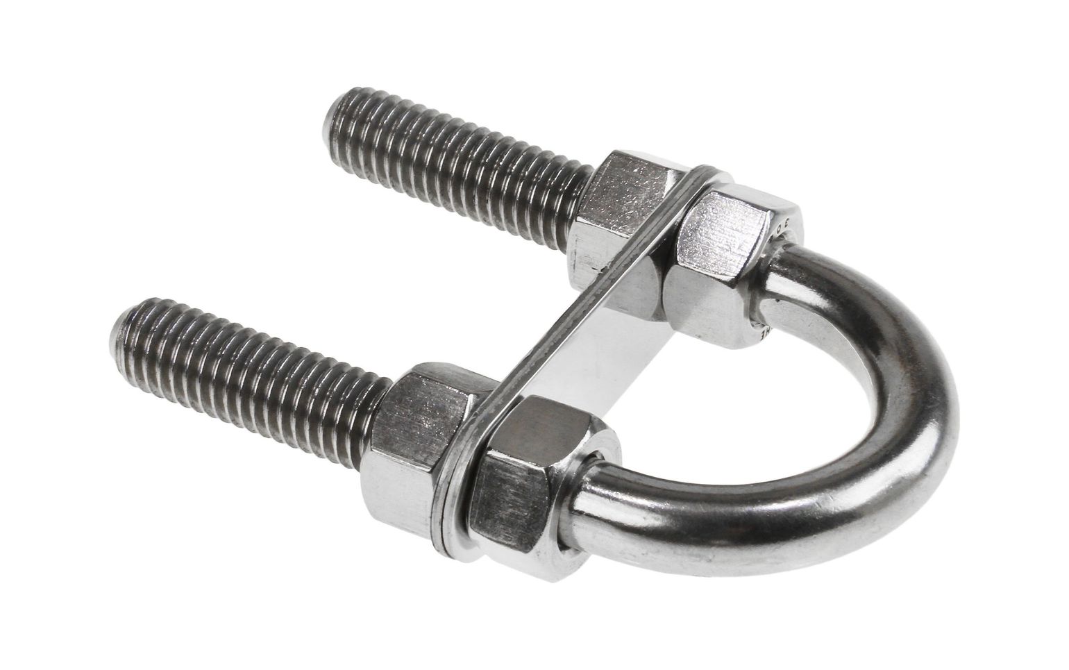 Рым-болт U-образный с крепежными пластинами. Применяется для крепления цепей, тросов, веревок, а также для подъема грузов во время такелажных работ. Выполнен из нержавеющей стали.