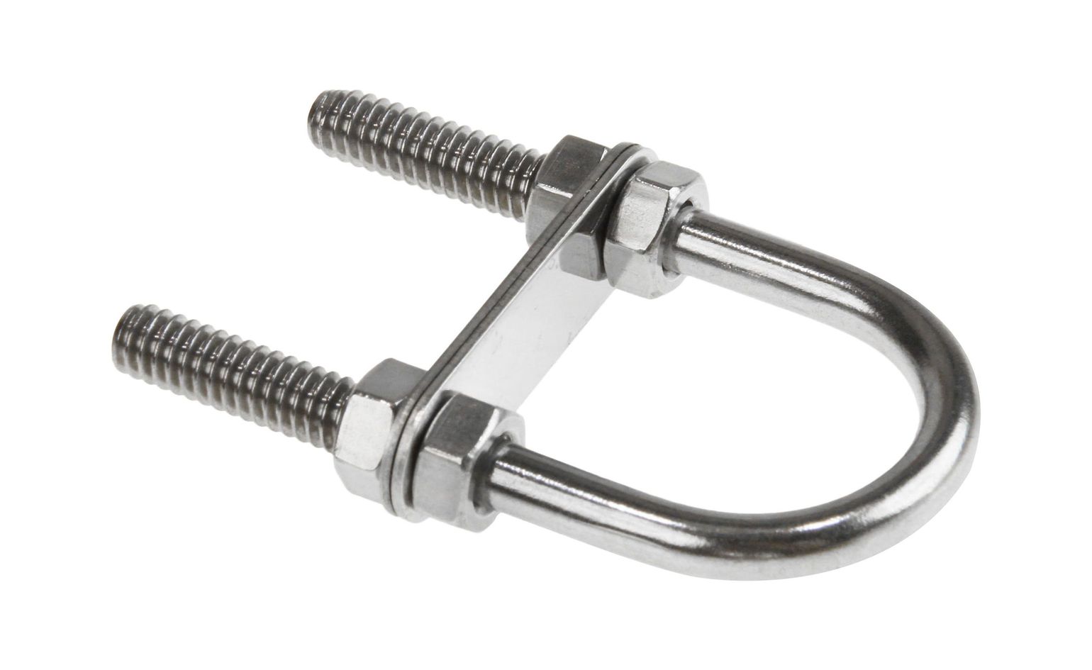 Рым-болт U-образный с крепежными пластинами. Применяется для крепления цепей, тросов, веревок, а также для подъема грузов во время такелажных работ. Выполнен из нержавеющей стали.