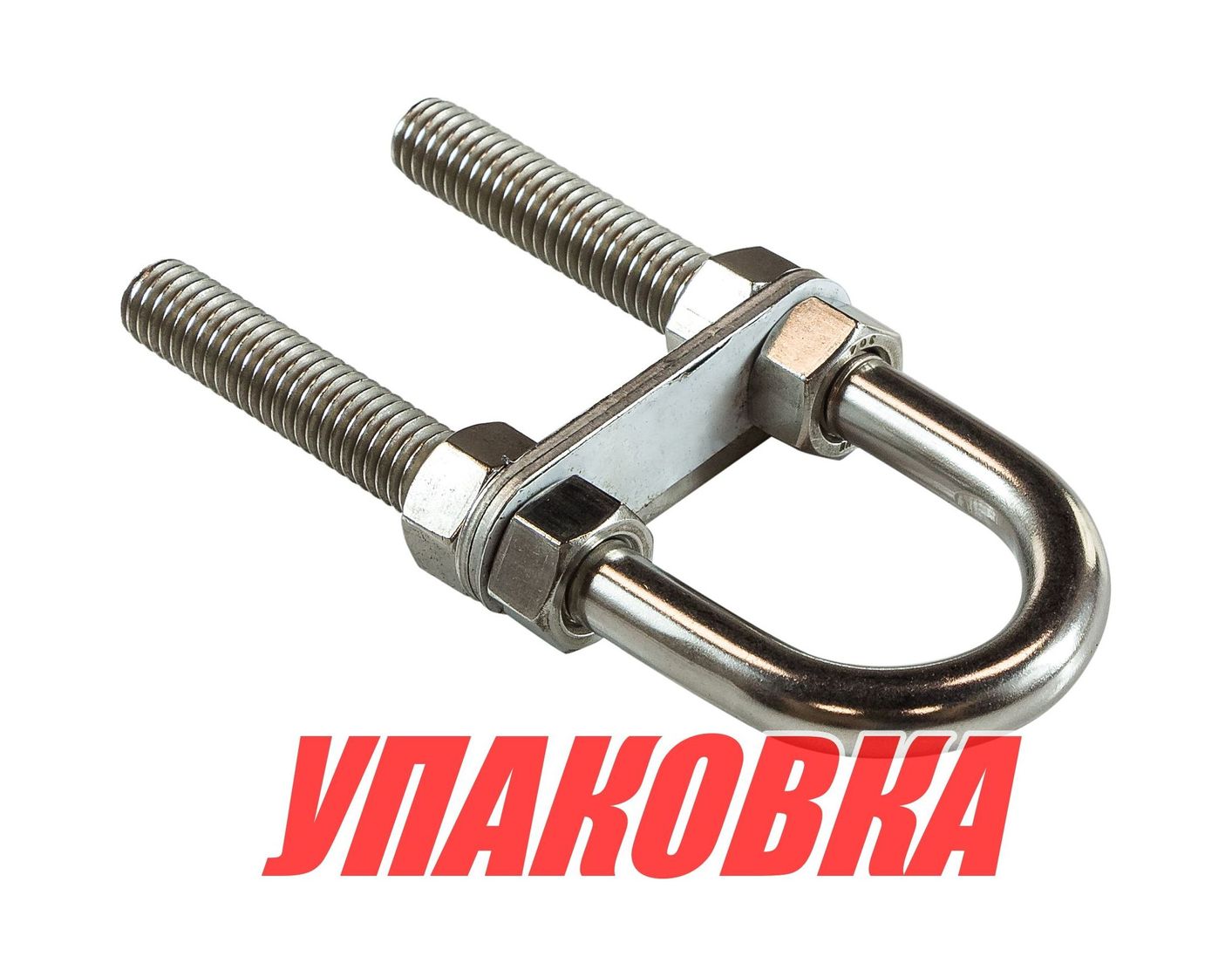 Рым-болт U-образный с крепежными пластинами. Применяется для крепления цепей, тросов, веревок, а также для подъема грузов во время такелажных работ. Выполнен из нержавеющей стали.