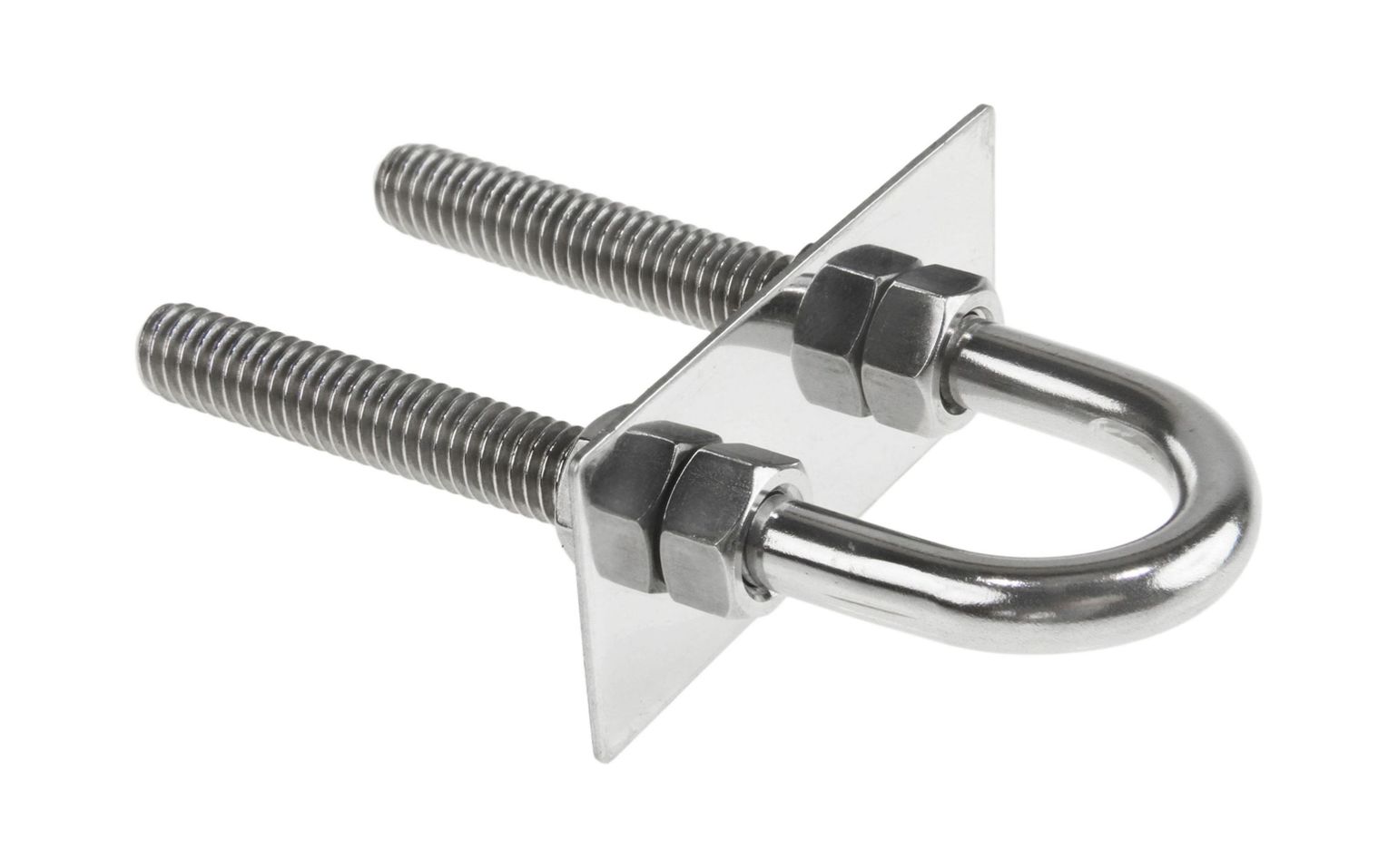 Рым-болт U-образный применяется для крепления цепей, тросов, веревок. Предназначен для подъема грузов во время такелажных работ. Выполнен из нержавеющей стали.