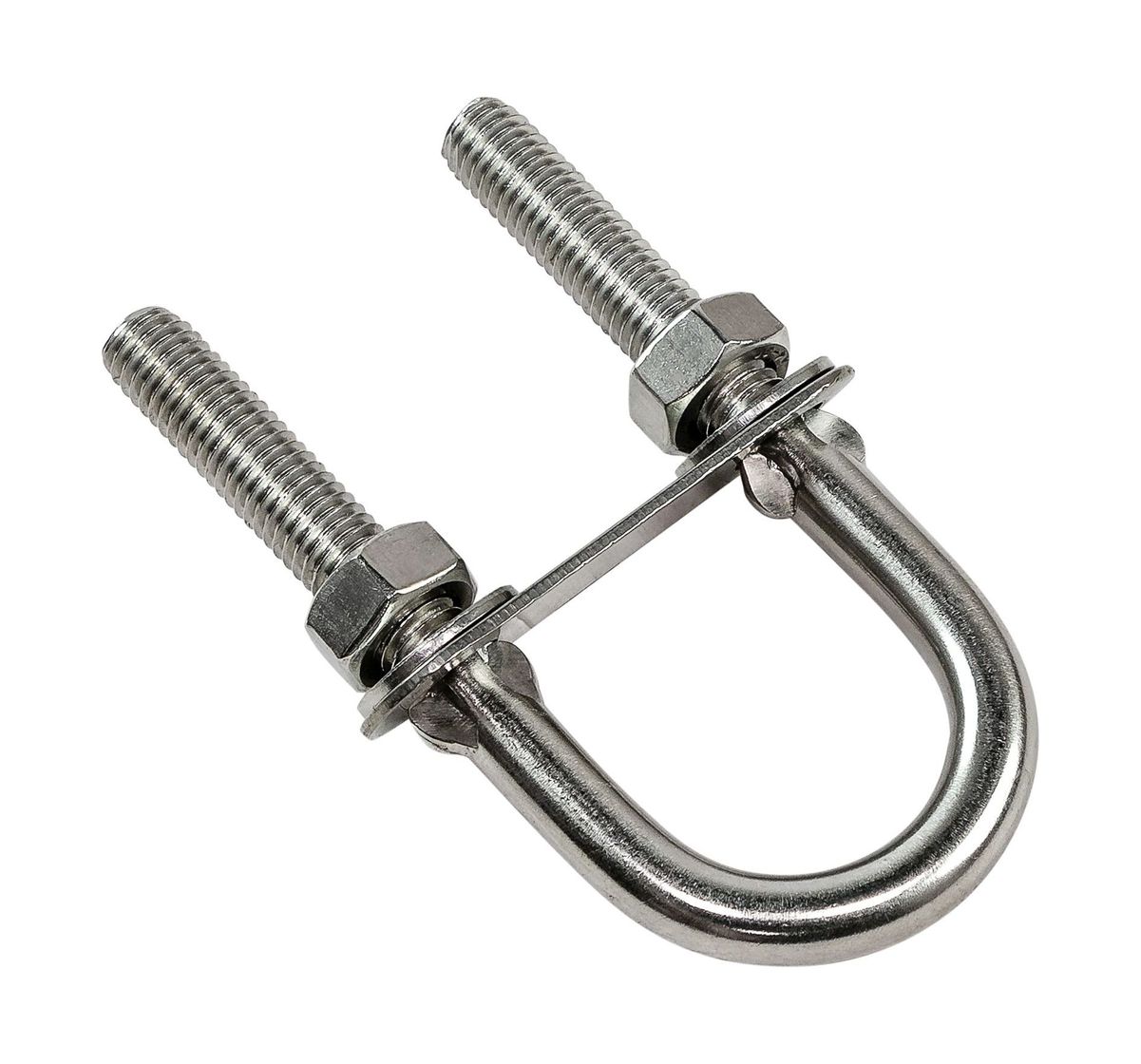 Рым-болт U-образный применяется для крепления цепей, тросов, веревок. Предназначен для подъема грузов во время такелажных работ. Выполнен из нержавеющей стали.