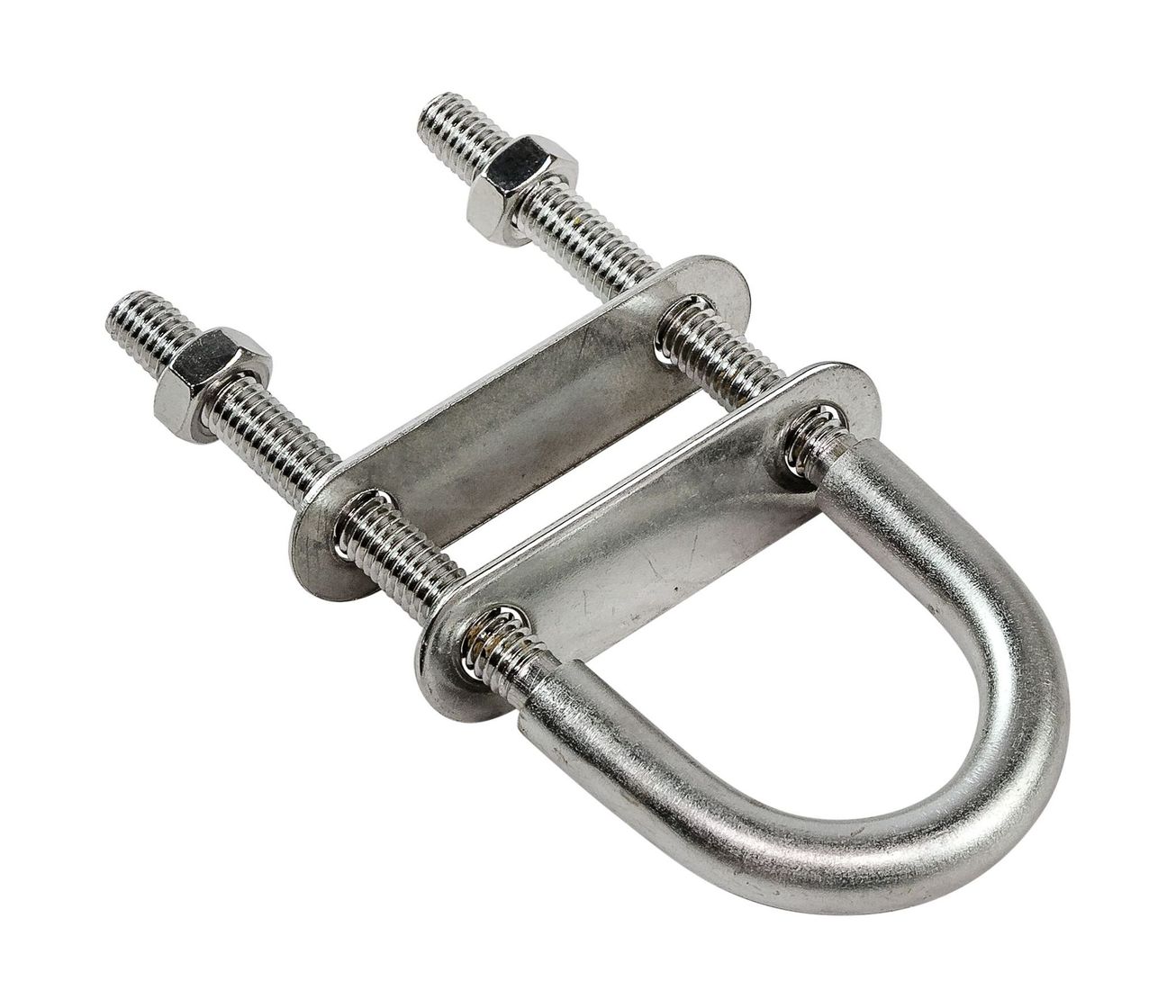 Рым-болт U-образный применяется для крепления цепей, тросов, веревок. Предназначен для подъема грузов во время такелажных работ. Выполнен из нержавеющей стали.