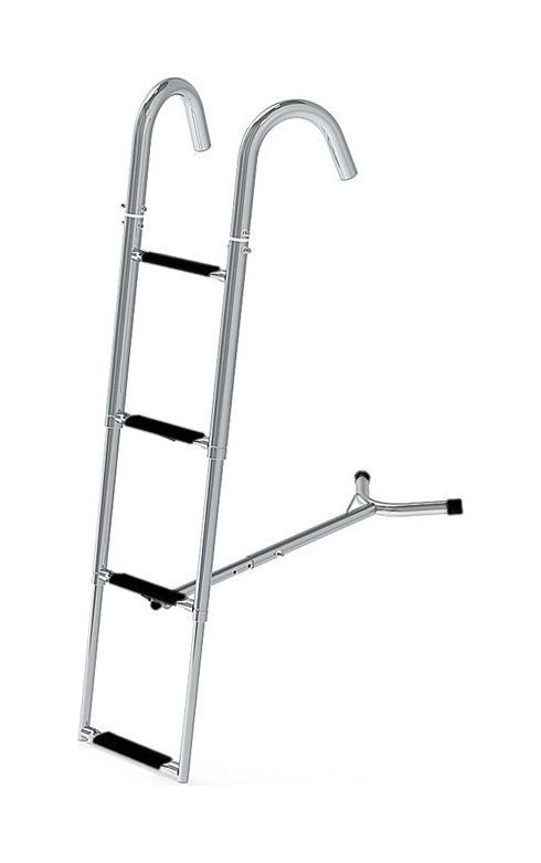 Трап телескопический оборудован подвижными крюкообразными кронштейнами для крепления на леер плавсредства и раздвижным упором для установки на носовую часть судна. Трап изготовлен из высококачественной зеркально-полированной нержавеющей стали AISI 304. Ступени покрыты антискользящей пластиковой площадкой черного цвета. Используются трубы следующих размеров: 19x1,5 мм; 22x1,5 мм; 25x1,2 мм; 28x1,5 мм; 32x1,5 мм; 35x1,5 мм; 38х1,5 ммХарактеристики модели «Трап телескопический носовой, 4 черных ступени (ширина 260 мм.)»