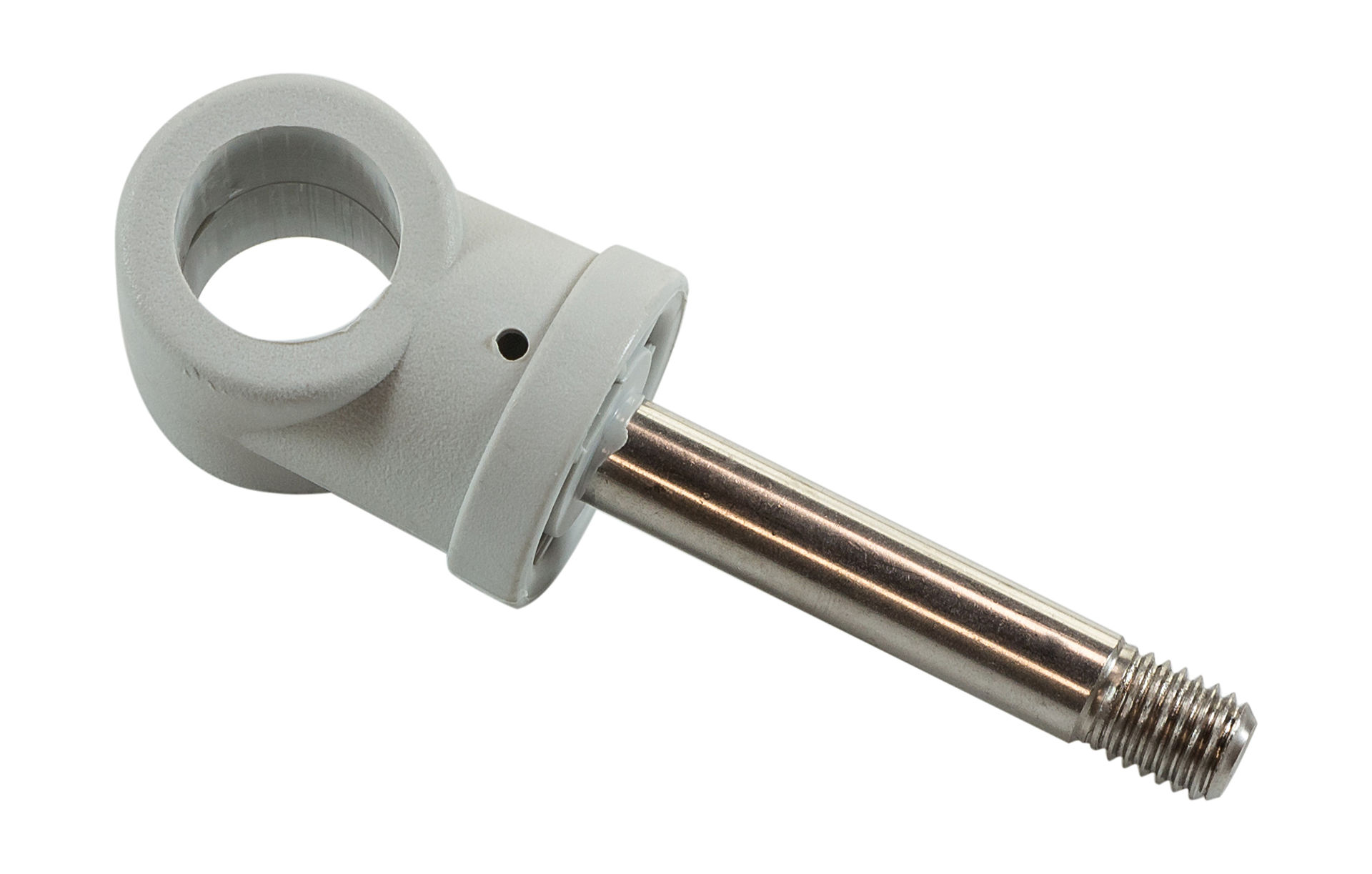 Шток (ось) уключины для надувных лодок. Применяется для подвижного закрепления весла. Длина штока - 58 мм. Диаметр отверстия - 18 мм.