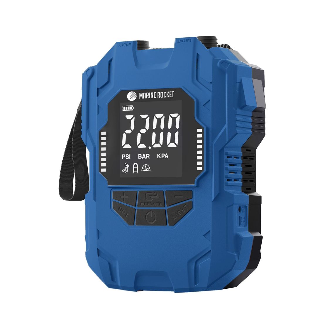 Насос высокого давления для накачивания: надувных лодок, аттракционов, Sup- досок; надувных палаток, оснащенный литий-ионным аккумулятором Портативный воздушный насос высокого давления (22 PSI, 1.5 бар) работает от литий-ионного аккумулятора емкостью 4000 мАч и реализует двухступенчатую систему подачи воздуха для обеспечения оптимальной производительности. Первая ступень обеспечивает подачу воздуха с производительностью 320 литров в минуту, вторая – 100 литров в минуту. Насос снабжен функцией автоматического отключения при достижении заданного давления, что гарантирует безопасную и точную работу. Для повышения комфорта использования насос оборудован USB-портом Type-C для зарядки мобильных устройств 5В, 2А. Зарядка насоса осуществляется через USB Type-C порт с напряжением 5-12В, 3А. При разряженной батарее насос может быть подключен к автомобильному прикуривателю для накачивания лодок, однако следует учитывать, что зарядка от автомобильного прикуривателя не поддерживается. Эргономичный ремешок обеспечивает удобную транспортировку насоса. В комплект поставки входит вместительная сумка для хранения и переноски, а также 7 насадок различного назначения, метровый воздушный шланг, зарядное устройство 100-220В на 12В, 3А и кабель питания со штекером прикуривателя . На информативном дисплее насоса отображается текущий уровень заряда аккумулятора, режим работы и достигнутое давление. Встроенный фонарь с несколькими режимами работы (постоянное свечение, стробоскоп, сигнал SOS) предоставляет дополнительную функциональность и повышает безопасность использования насоса в условиях недостаточной видимости или в темное время суток. Производитель не рекомендует использовать насос более 20 минут, так как это может привести к перегреву устройства и риску вывести его из строя, поэтому следует давать насосу остыть при накачивании нескольких плавательных средств.Характеристики модели «Насос электрический аккумуляторный высокого давления 4000mAh 22Psi, Marine Rocket»