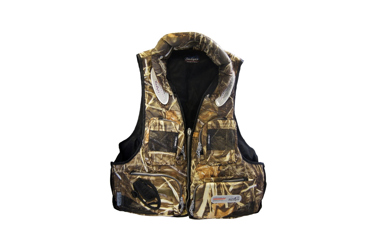 Рыболовный жилет поддерживающего типа оснащен вынимаемыми вставками из PE с избыточной плавучестью. Имеет подъемную силу 7,5 кг и способен удерживать на плаву человека весом до 120 кг. Множество внешних и внутренних карманов делают такой жилет идеальным как для рыболова, так и для охотника.
