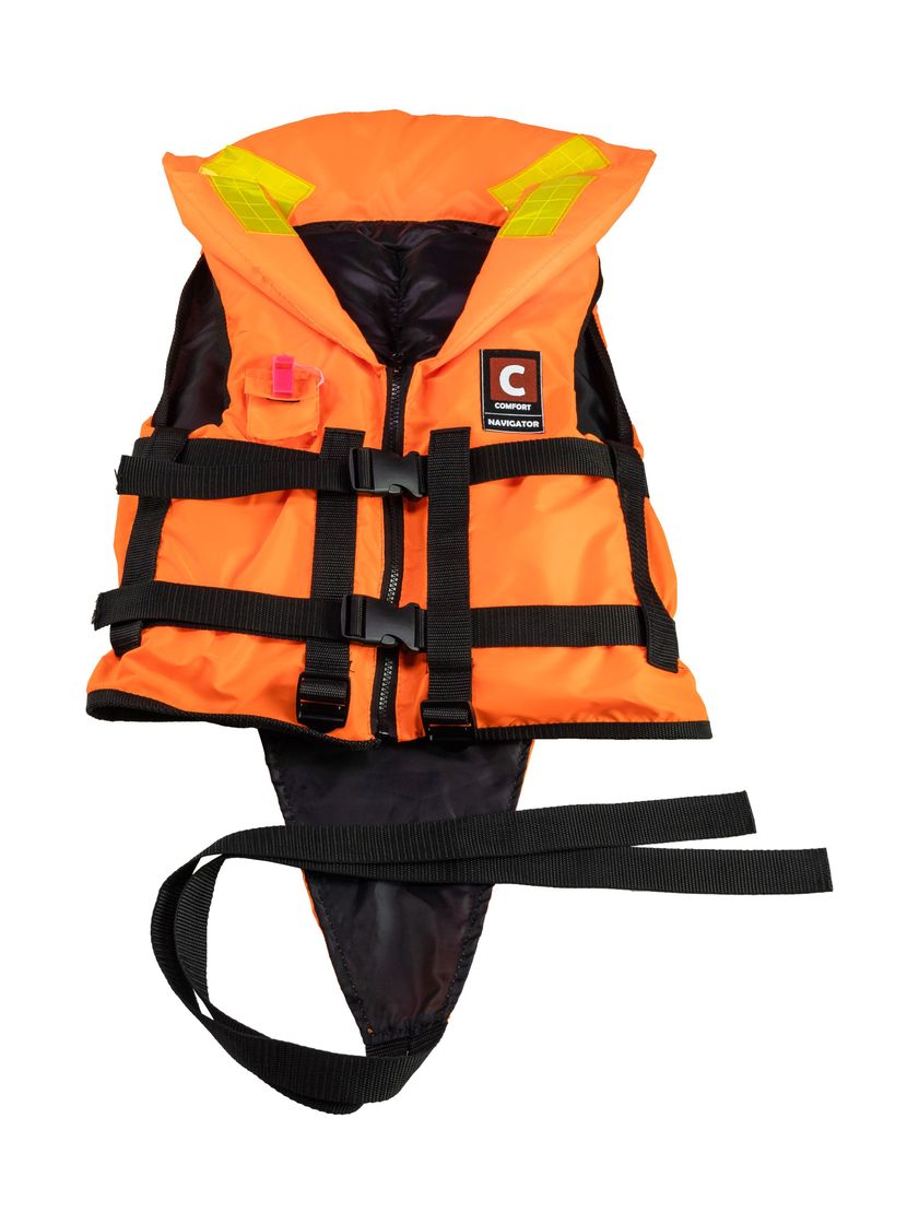Спасательный жилет COMFORT NAVIGATOR – классическая модель, предназначенная по размерам как для детей, так и для взрослых. Имеет расцветку сигнального ярко-оранжевого цвета. По конструкции имеет два объёмных кармана и один нагрудный под телефон или навигатор. Благодаря высокому воротнику надежно поддержит голову над водой и не допустит опускание ее под воду в случае, когда человек находится в бессознательном состоянии, а так же защитит от холодного ветра на воде. Жилет снабжен двумя светоотражающими полосами на плечах для наилучшего обнаружения человека в темное время суток, светоотражающие полосы имеют сертификат и остаются в рабочем состоянии при намокании. Стропы и качественные пряжки надежно фиксируют спасательный жилет на теле человека. Паховый ремень дает дополнительную гарантию того, что жилет не слетит с тела при падении в воду, если вдруг он плохо затянут стропами в области талии. Правильно расположенный наполнитель положительной плавучести не допускает сковывания движений и располагает человека лицом вверх при попадании в воду. Также жилет укомплектован свистком для подачи звукового сигнала в экстренной ситуации. Спасательный жилет COMFORT NAVIGATOR прекрасно подойдет для прогулок на лодке, катере и прочих видах водно-моторной техники. Жилет оснащен ярлыком с указанием номера сертификата соответствия и ТУ производителя соответствующего требованиям нормативных документов по ГОСТ 58108-2019 Сертификат имеет юридическую силу на всей территории Российской Федерации.Характеристики модели «Жилет спасательный COMFORT NAVIGATOR (Штурман) детский,40 кг»