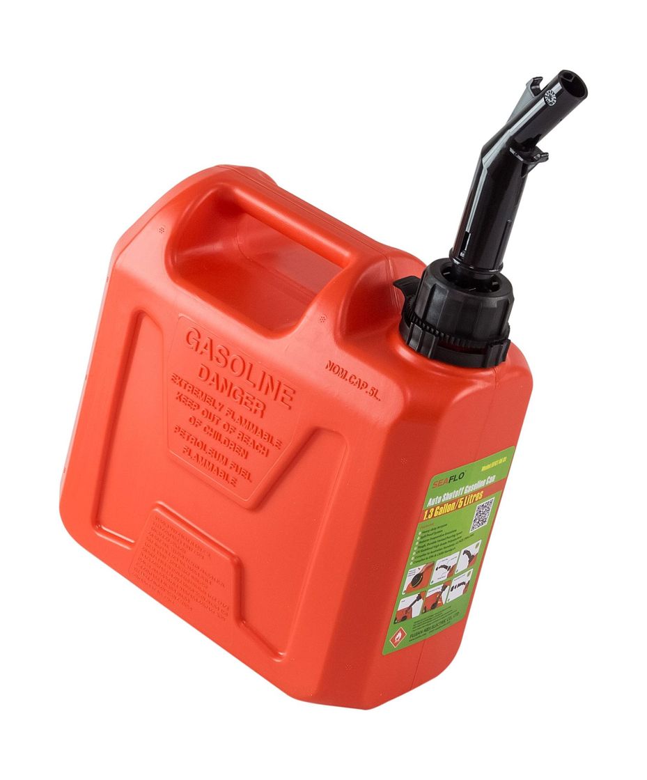 Топливная канистра с отливной пластмассовой насадкой, позволяющей оперативно залить топливо в бак.