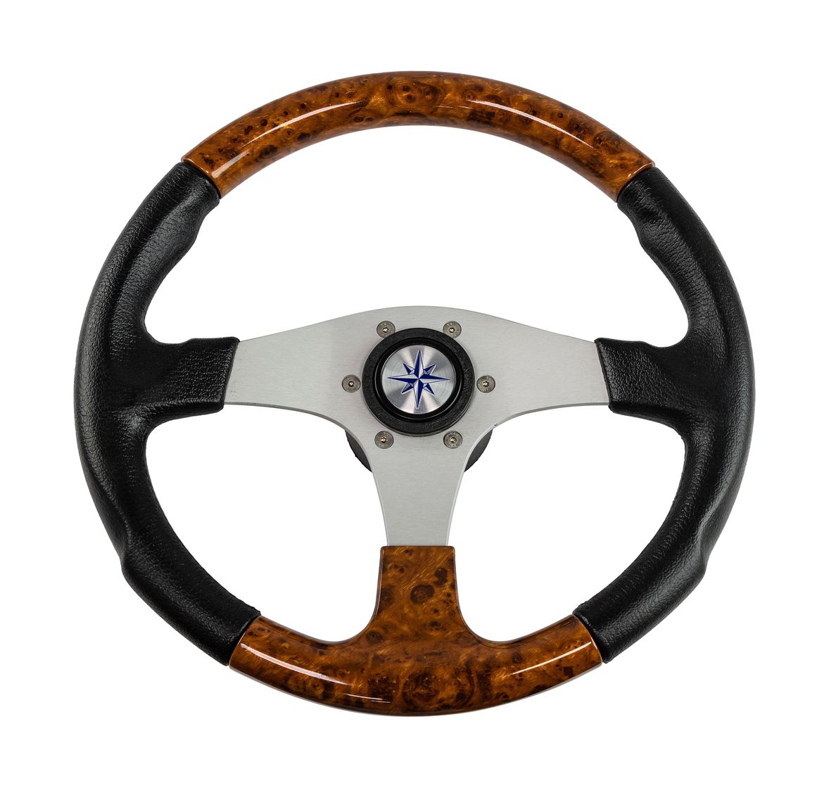 Отзывы о модели «Рулевое колесо EVO MARINE 2 обод черный/коричневый, спицы серебряные д. 355 мм»