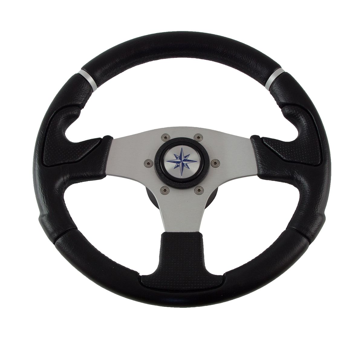 Характеристики модели «Рулевое колесо NISIDA обод черный, спицы серебряные д. 320 мм»