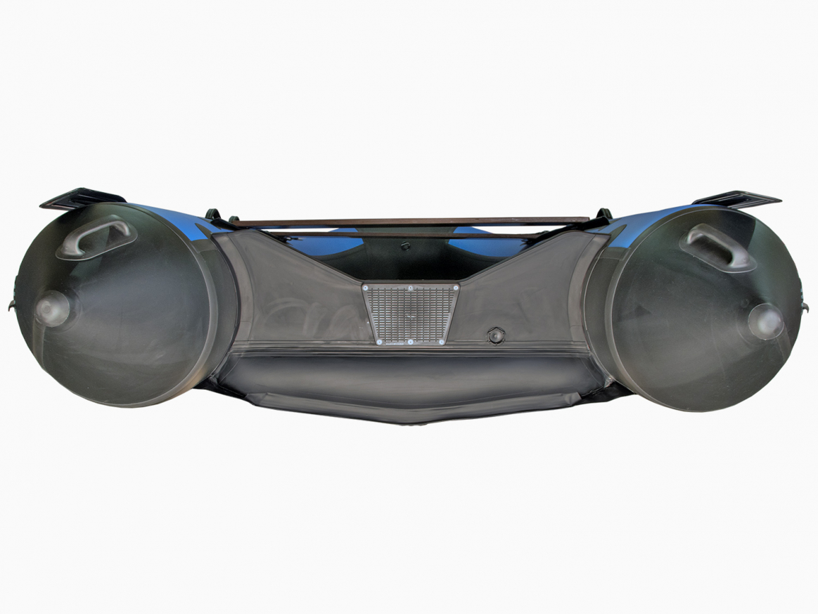 Форма конструкции: диаметр баллонов — 53 см, носовой баллон уменьшен до 40 см, что сокращает парусность, облегчает управление и увеличивает внутреннее пространство лодки.