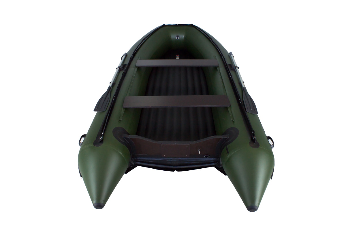 В надутом виде днище дополнительно усиливается слоем ПВХ-ткани по всей поверхности скольжения. Пол внутри лодки проклеен защитным слоем нескользящей ткани по всей площади. На такой лодке Вам не будут страшны мелководные старицы, заросли камышей и затопленные коряги.